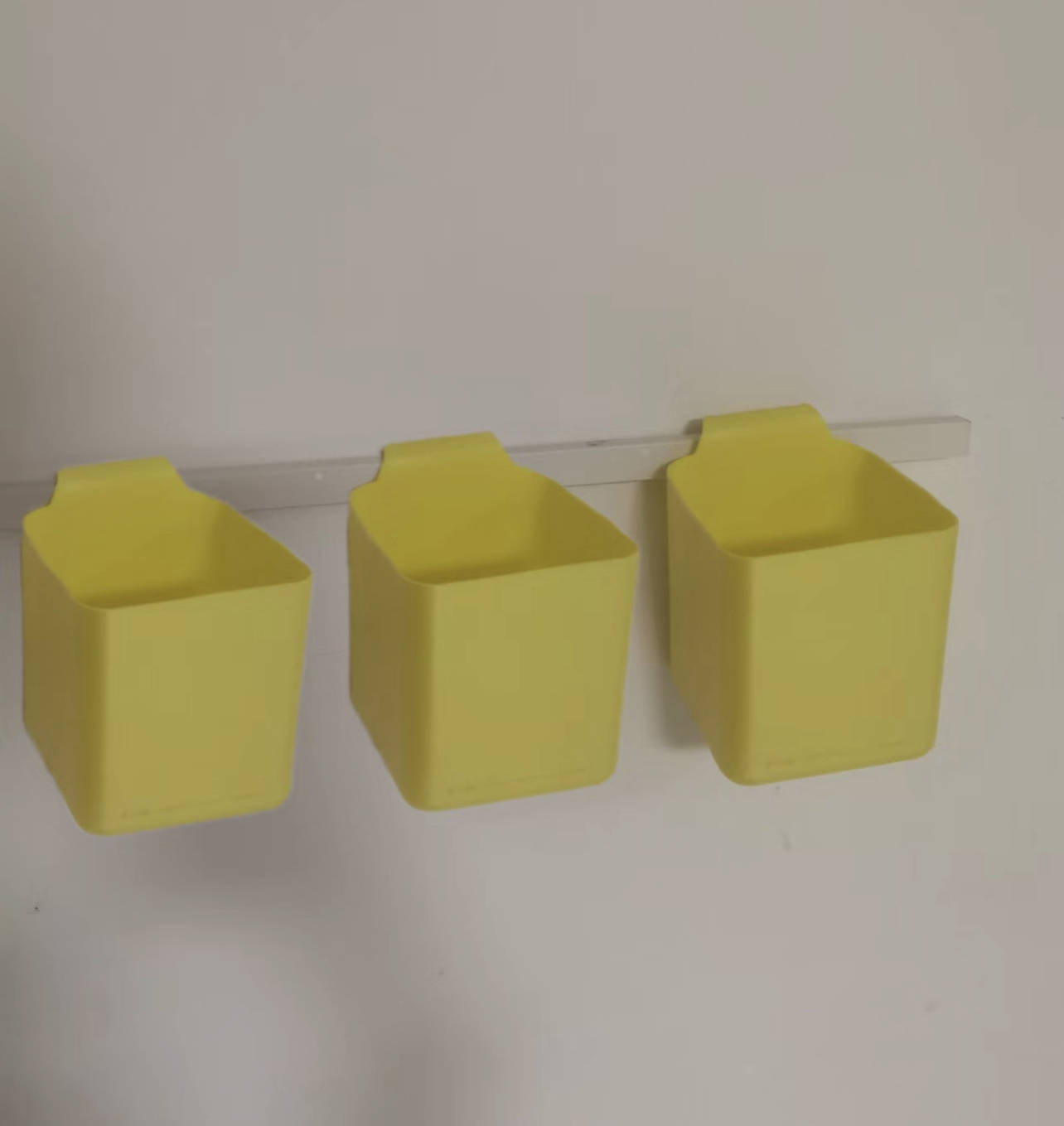 然后挂在压条上、伸缩杆上,与卖的壁挂收纳盒可以说无异,颜值也不差,要是不说,谁也看不出来这是废品改造的。